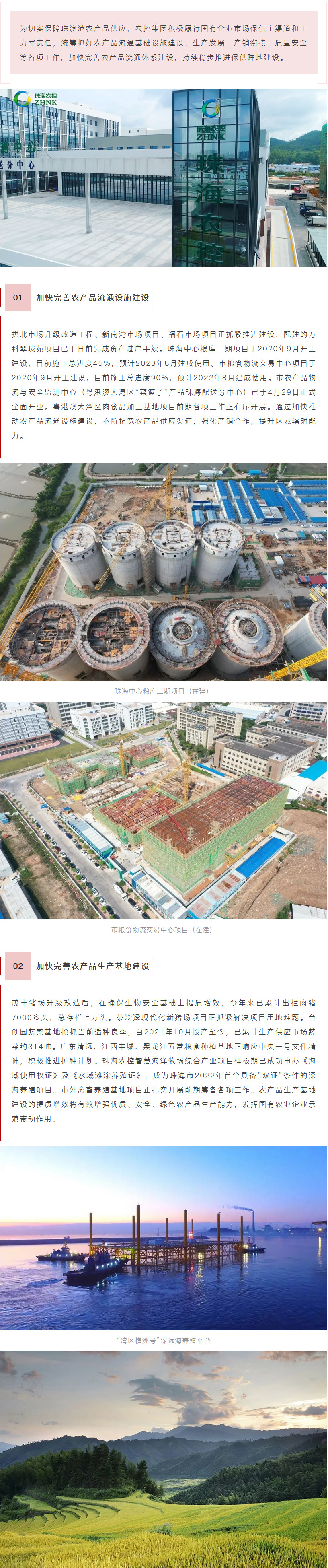 珠海农控集团、珠海中心粮库项目是市、省级重点建设项目、中央投资补助项目。一期工程计划明年1月完工,截止8月底,已经全面完成基础开挖和部分单体的封顶工,主体工程完成50%,投资完成3101万元