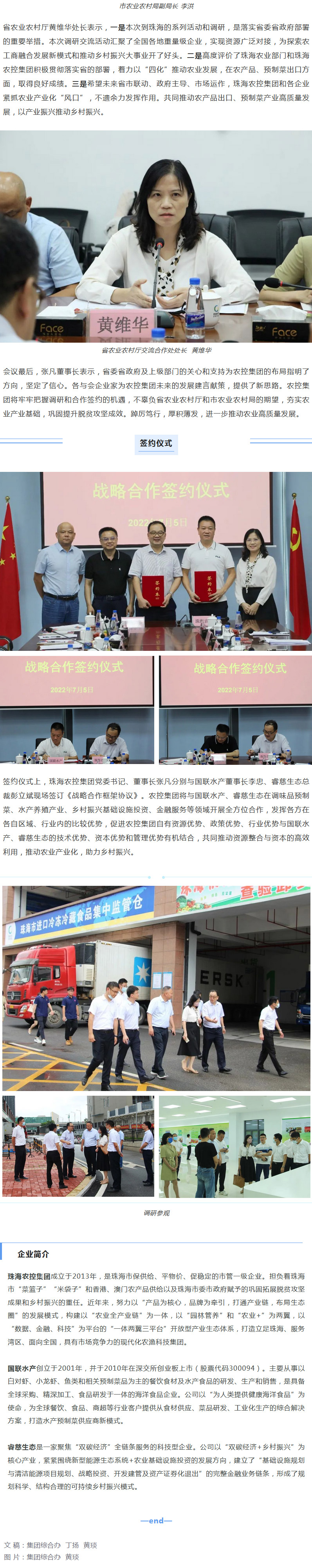 省农业农村厅领导率企业代表调研珠海农控集团并见证签约