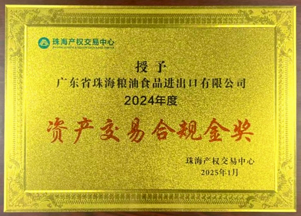 近日,珠海产权交易中心莅临珠海农控集团旗下食出公司,为食出公司授牌“2024年度资产交易合规金奖”,对食出公司在资产租赁、转让等交易过程严格遵守相关法律法规以及确保交易透明、公正、合规等方面表示高度认可。
