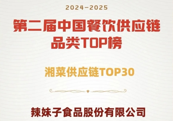 近日,珠海农控集团控股辣妹子食品股份有限公司凭借在湘菜餐饮行业供应链领域的稳健表现,成功入选第二届《中国餐饮供应链品类》TOP榜单,这一荣誉不仅体现出辣妹子产品在餐饮供应链行业的不俗表现,也是餐饮行业对辣妹子在供应链领域成就的重要认可。