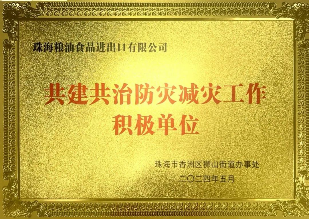 为深入贯彻落实习近平总书记关于防灾减灾救灾重要论述及国家、省、市关于防灾减灾救灾重大决策部署要求,近日,狮山街道举办2024年全国防灾减灾日宣传活动上,珠海农控集团下属食出公司荣获“共建共治防灾减灾工作积极单位”称号。