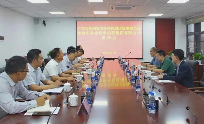 5月9日上午,广西百色国家农业科技园区管理委员会主任王晓一行到珠海农控农产品物流园调研参观并在农控集团会议室交流座谈。农控集团党委书记、董事长张凡,副总经理肖军参加座谈会。