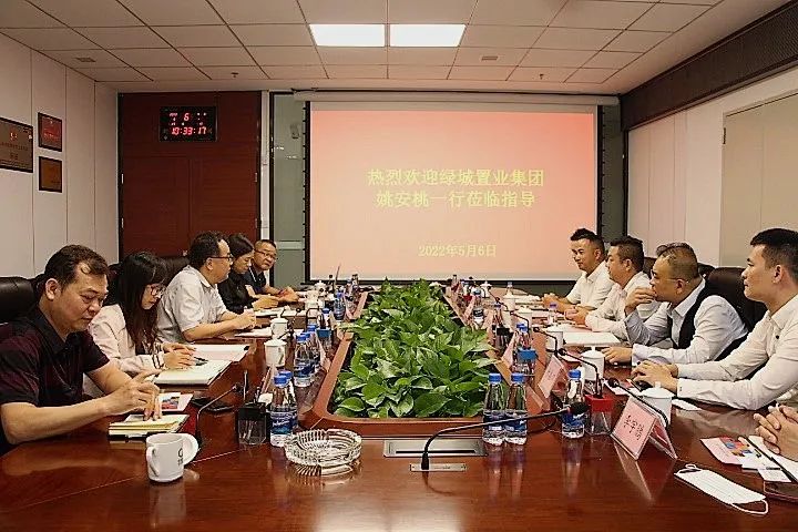 2022年5月6日上午,绿城置业发展集团有限公司华南区总经理姚安桃一行到访珠海农控集团,双方就推进合作发展相关事宜开展深入交流。珠海农控集团党委书记、董事长张凡,党委委员、副总经理薛萍参加了会谈。