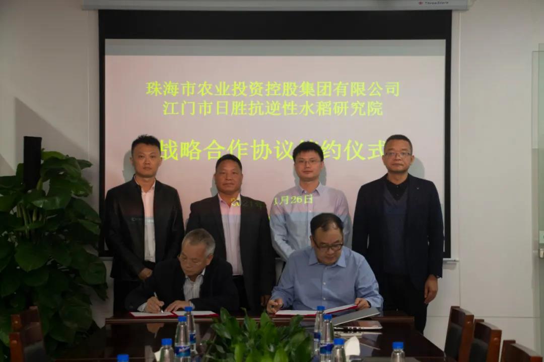 11月26日,农控集团与江门市日胜抗逆性水稻研究院签订《耐盐水稻推广战略合作协议书》。农控集团党委书记、董事长张凡同志,江门市日胜抗逆性水稻研究院陈日胜教授代表双方签约。
