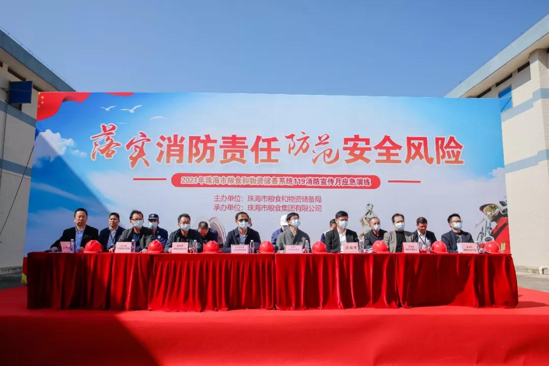 为验证我市粮食和物资储备安全生产应急救援预案的可行性,进一步检验和加强珠海市粮食和物资储备系统应急指挥协调处置能力, 11月24日上午,由珠海市粮食和物资储备局主办、珠海市粮食集团承办的2021年度珠海市粮食和物资储备系统119消防宣传月应急演练在珠海中心粮库隆重举行。