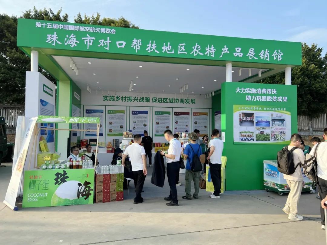 11月12日—17日,第十五届中国国际航空航天博览会期间,珠海市农业农村局、珠海农控农产品物流园有限公司联合设立珠海市对口帮扶地区农特产品展销馆,精心展出200余种农特优产品,向全球来客展现珠海在大力实施消费帮扶、助力乡村振兴工作中取得的丰硕成果。
