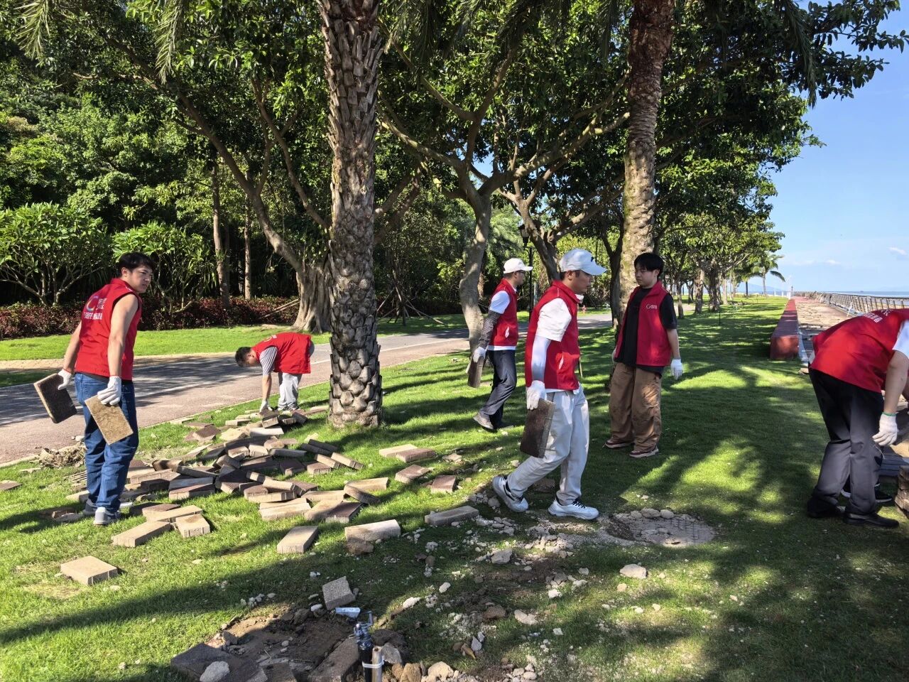 9月26日,台风“桦加沙”过境后的野狸岛公园受损严重。为尽快恢复岛上景观,满足市民游客游览需求,农控集团党委组织青年突击队及粤华公司、晟华公司、食出公司53名青年骨干组成志愿服务队,火速奔赴野狸岛公园,争分夺秒开展抢修工作。