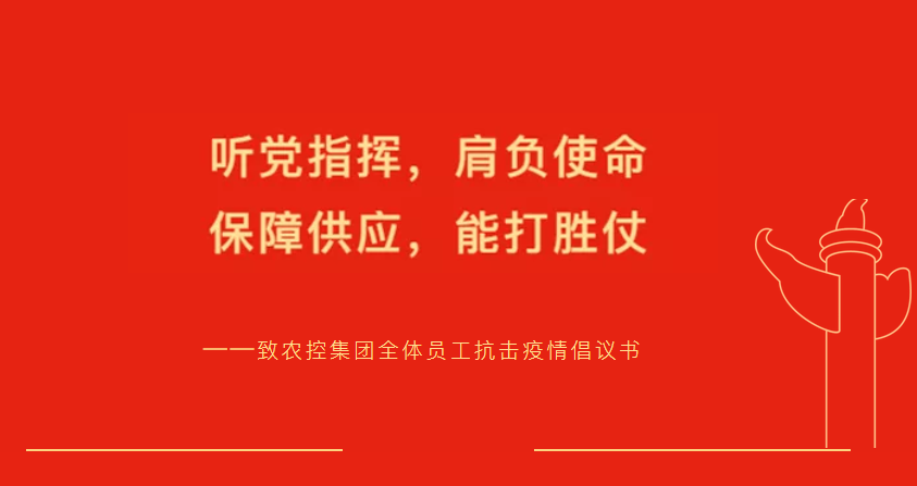 农控集团全体员工: 疫情就是命令,防控就是责任,做好我市当前疫情防控工作是头等大事。为坚决落实市委市政府关于疫情防控的部署要求,坚决打赢疫情防控阻击战,农控集团党委现向公司全体员工发出疫情防控倡议书。