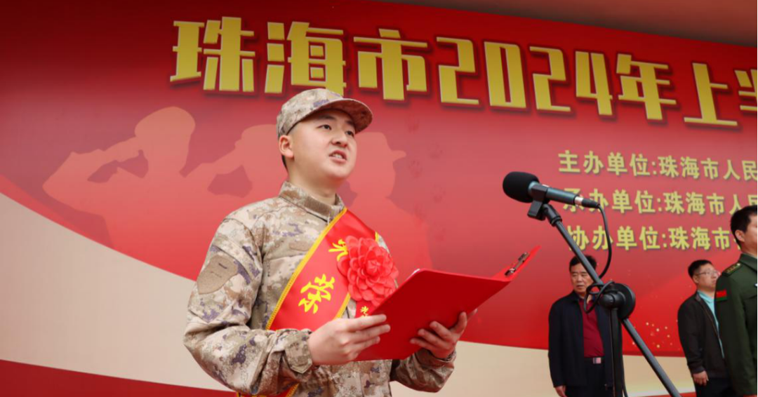 2024年3月15日,2024年春季新兵入伍欢送大会在珠海警备区国防教育训练中心隆重举行。现场气氛庄重而热烈。珠海农控集团应征入伍员工杨东升、沈涎帆身着戎装站在队列里,他们即将离开家乡,踏上保家卫国的征程,用青春和热血书写新的辉煌篇章。